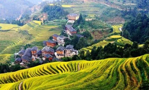 桂林龍勝縣東南部和平鄉(xiāng)境內(nèi),有一個(gè)規(guī)模宏大的梯田群,如鏈似帶,從山腳盤(pán)繞到山頂,層層疊疊,高低錯(cuò)落,其規(guī)模磅礴壯觀,氣勢(shì)恢弘,有"梯田世界之冠"的美譽(yù),這就是龍脊梯田。