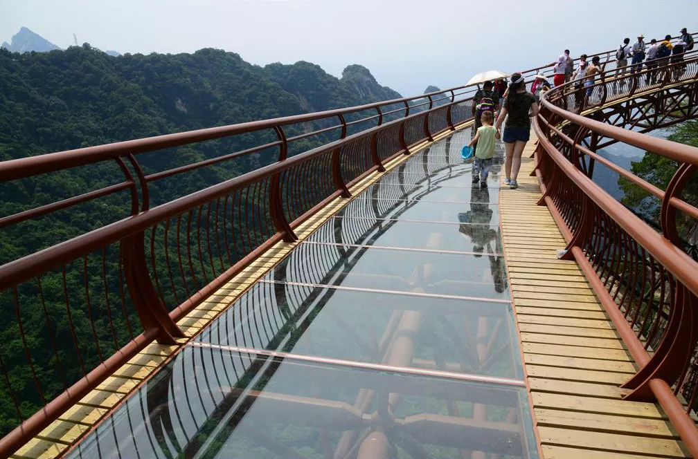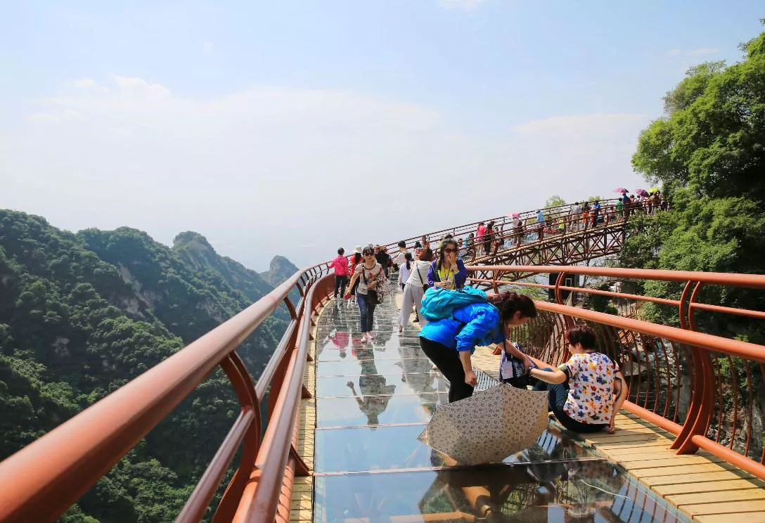 讓人腳軟、扶墻的玻璃棧道,懸于峭壁之上,四周是誘人景色,腳下是深淵,驚險(xiǎn)刺激。