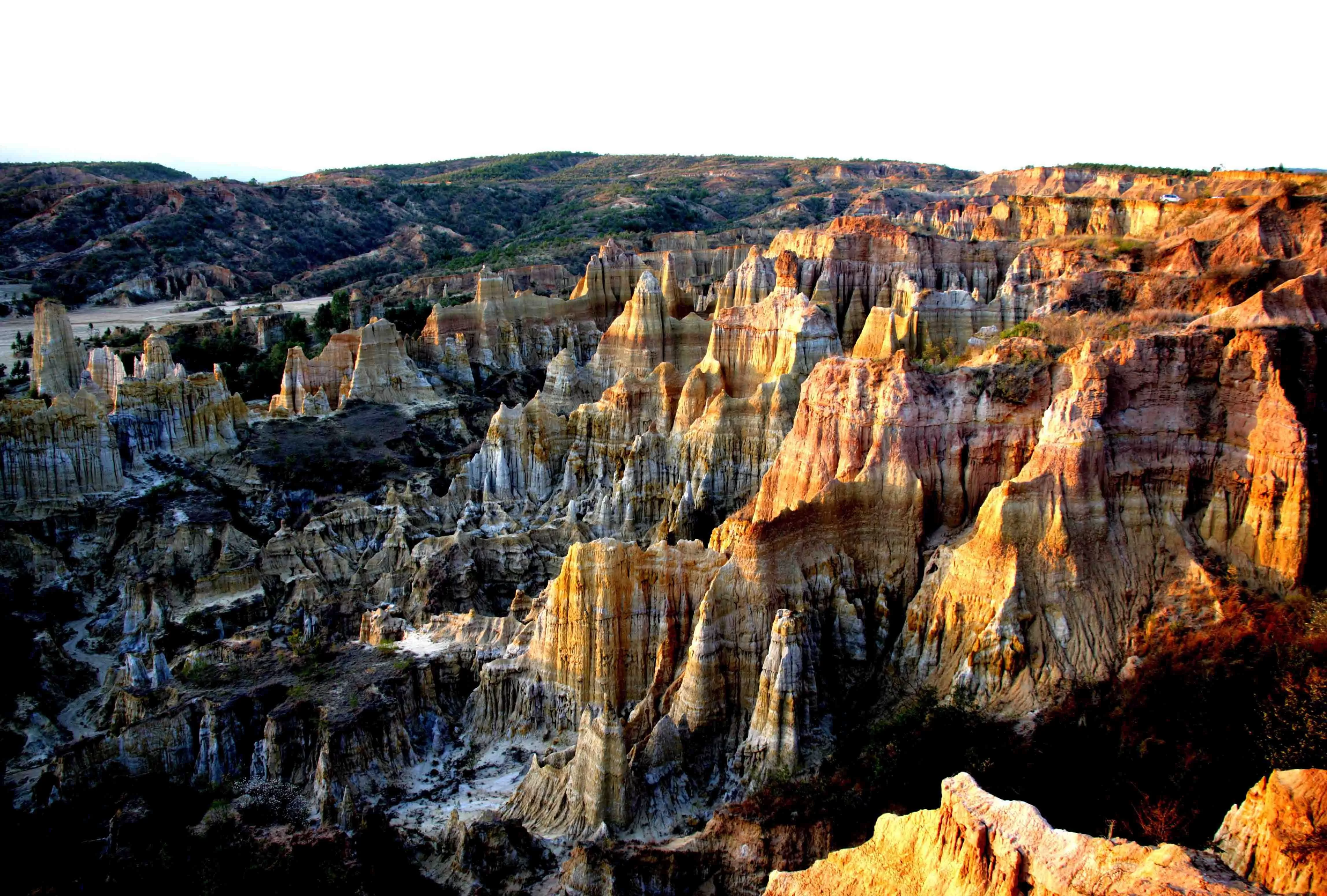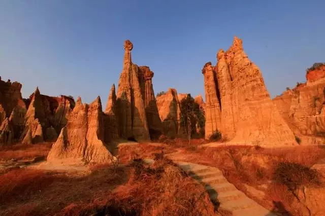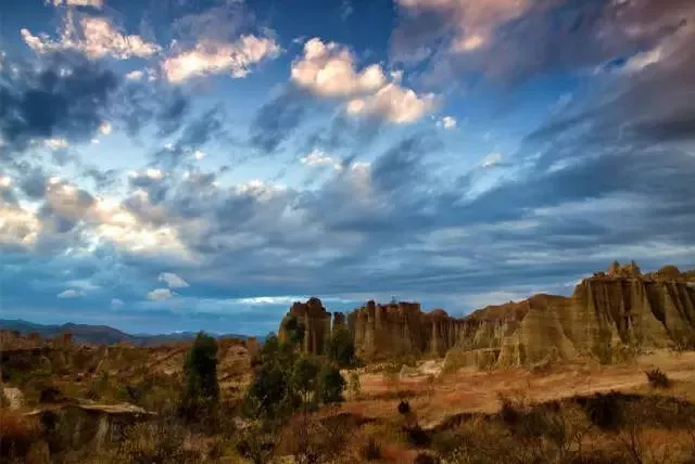 又叫新華土林,地處元謀、大姚、牟定3縣交界的大山深處,位于元謀縣的新華鄉(xiāng)。浪巴鋪土林面積約1.4平方公里,它以其奇特而壯觀聞名于世——土林色彩豐富,頂部以紫色為主,中部呈灰白色,下部則以黃色為基調(diào),點(diǎn)綴以褐、灰、白、黃、綠、棕等顏色,置身其間,仿佛面對一個遠(yuǎn)古的夢幻,“念天地之悠悠,獨(dú)愴然而涕下"的感受油然而生?!?/p>