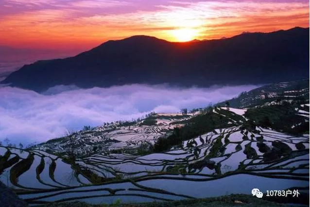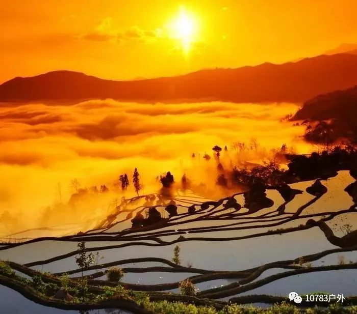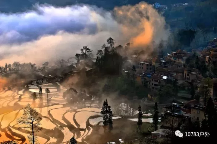 【多依樹梯田】:多依樹的日出是最美的,就算是不能看到日出,它的清晨,也是美到極至的一幅動態(tài)風(fēng)景畫。而煙雨迷霧下若隱若現(xiàn)的多依樹村莊,則是現(xiàn)實(shí)中的夢幻仙境。