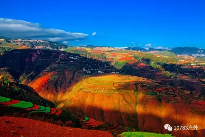 這是一片壯觀的土地,被專家認(rèn)為是全世界除巴西里約熱內(nèi)盧外最有氣勢的紅土地而其景象甚至比巴西紅土地更為壯美。去了東川,你會感嘆天地間還有如此濃烈的色彩。艷麗而斑斕,似乎能灼痛雙眼……