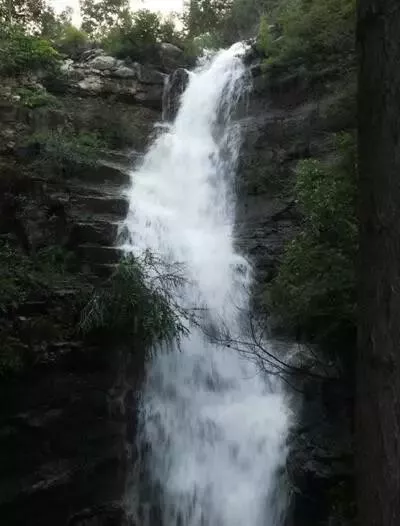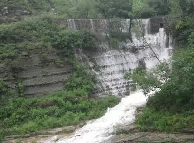 龍宮水廠北面300米處,有瀑布名曰“銀河瀑布”。銀河瀑布高30余米,從山崖上豎直跌落,好似由天上飛下。瀑布晶瑩如銀,氣勢恢宏,水霧和著冷風(fēng)實(shí)在是沁人心脾,耳目一新。