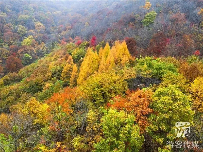 金秋置身青山溝,放眼望去,到處紅光四溢,美得誘人,有如大自然里燃起的千堆篝火,燃燒著好客的心。山中那一棵棵似是著了火的樹,紅得像寶石,在陽(yáng)光的照射下閃閃發(fā)光,風(fēng)一吹,那紅似乎就要淌出來,把周圍都燒著一樣,讓人看得緊張萬(wàn)分。而光線又是那么的“性感”,奇妙的光影更給楓林增添了幾分浪漫。這里紅的、黃的、紫的楓葉,再配上翠綠的松樹,使得整個(gè)青山溝如同一幅色彩艷麗的山水畫,引得無(wú)數(shù)游客流連忘返。