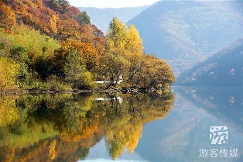 青山溝秋色中最美的景致,當(dāng)數(shù)乘船游覽青山湖。秋季一來,湖岸山上楓樹,被風(fēng)霜染成了紅色,與翠綠的湖水交相輝映,讓人不由得陶醉在其中。泛舟青山湖,但見湖水環(huán)抱群山,疊山倒映湖中,湖光山色,美不勝收;再看湖水,如綢似緞、恬靜無(wú)痕,偶爾風(fēng)生斜波、漪漣萬(wàn)頃,襲人芳心。