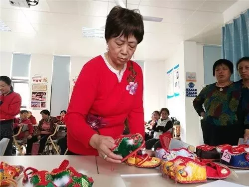 楊老師拿起一等獎的虎頭鞋向大家講解起了細節(jié):“這雙虎頭鞋的鼻子和普通的不一樣,它的鼻子是立起來的,其他的都是平面的。”一番點評說得大家心服口服,表示還要更加努力學(xué)習技藝的精髓。