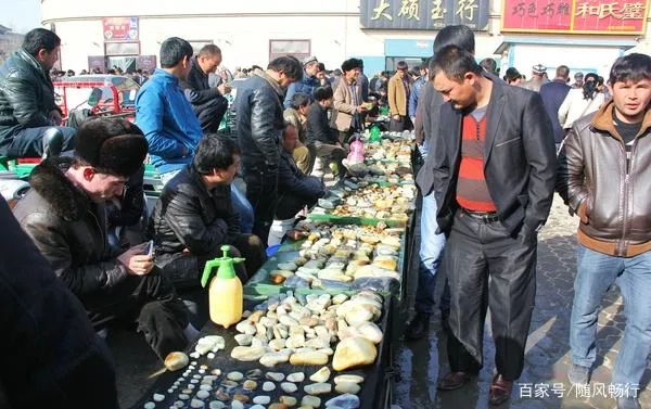 玉龍喀什河采玉人橋頭玉石原料交易市場,是新疆和田玉從玉龍喀什河里挖出來的第一個交易市場,說是市場倒不如說是當地居民自發(fā)形成的玉石交易場所。在政府規(guī)范管理下,這里已是和田地區(qū)最為集中的交易區(qū)。