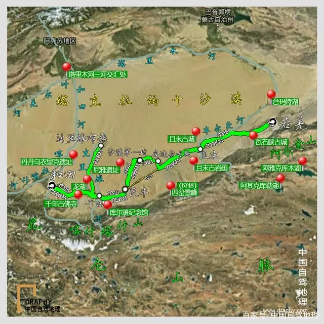 1、從庫爾勒到若羌縣走218國道,處于塔克拉瑪干沙漠北部邊緣,途中加油站較少,要保持燃油充足。