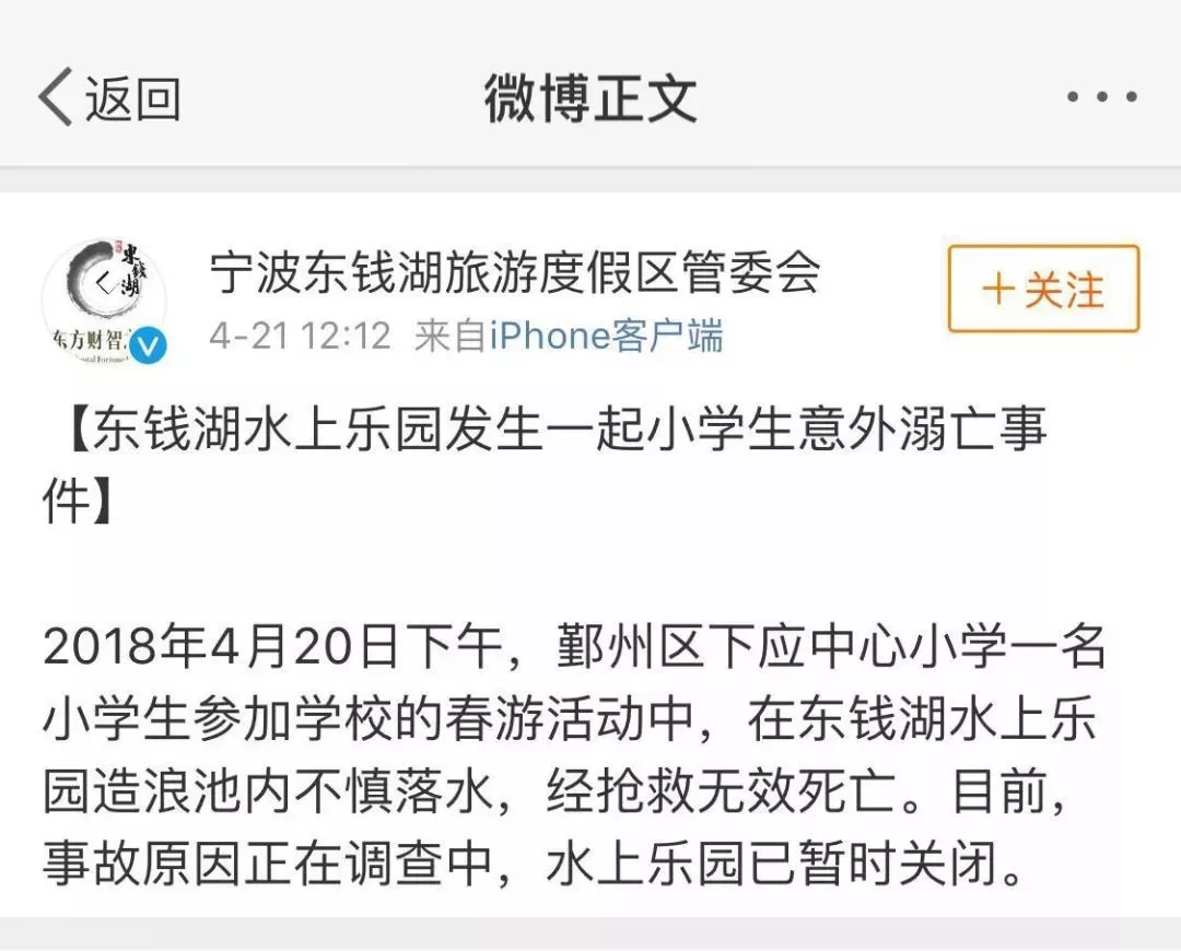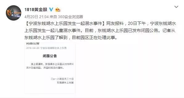 東錢湖水上樂園發(fā)生了一起意外,一名小朋友不幸死于園內(nèi)!