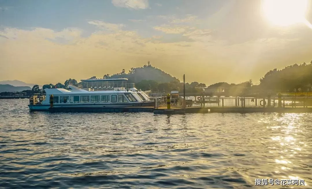 東錢湖是靜謐的,落日余暉灑在港口處。碼頭上各色游船,湖面上波光鱗鱗,層層水浪。遠(yuǎn)眺迎風(fēng)破浪,影綽起伏的點(diǎn)點(diǎn)白帆。游船停泊在港內(nèi),湖水拍打臺(tái)階聲聲作響。這時(shí)東錢湖的靜謐,是需要細(xì)細(xì)去體會(huì)的。