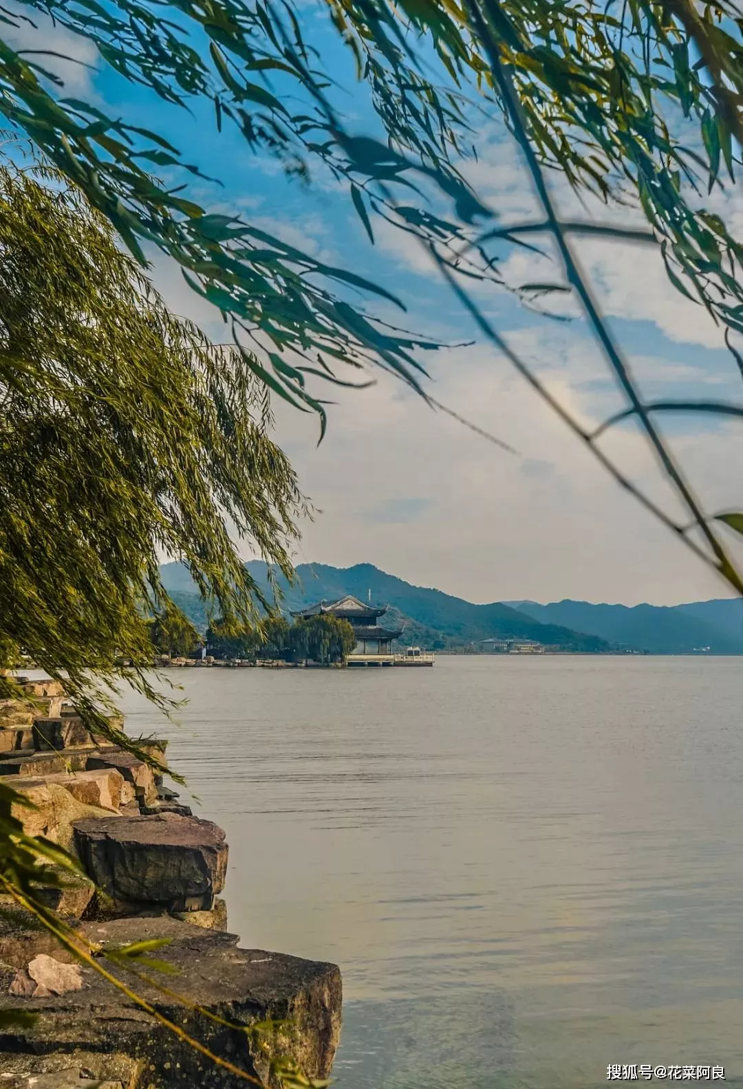 行于湖堤之上,一路可見煙波浩渺,楊柳依依,風(fēng)光旖旎。相對(duì)比杭州西湖的精致,東錢湖更顯寬闊大氣。