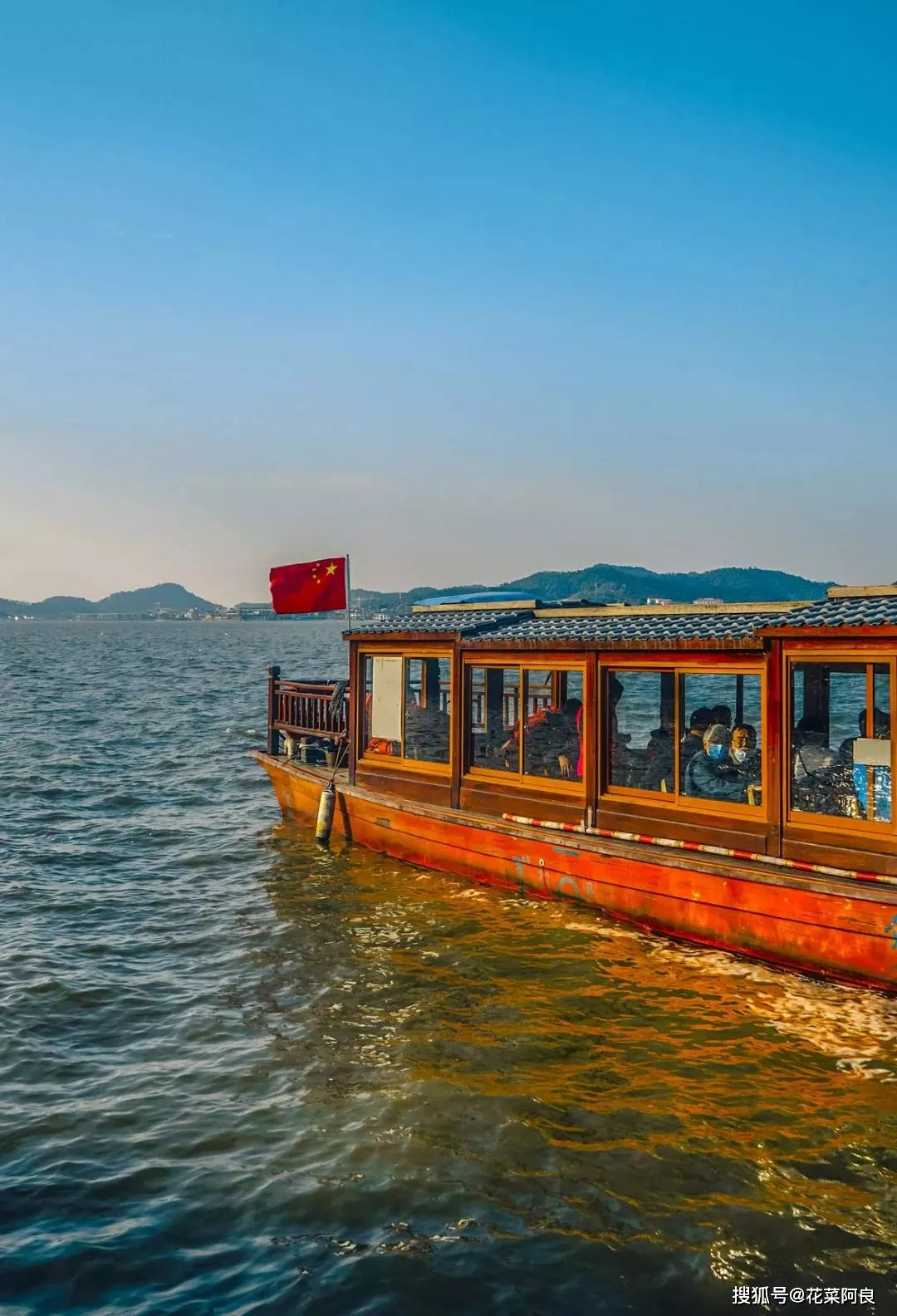 這次前來,霞嶼寺及小普陀諸多建筑正在修繕當(dāng)中,所以并未細(xì)細(xì)瀏覽。估計(jì)不日便可煥然一新。在水月觀音處可坐游船到東錢湖游客中心處,隨波搖晃,顛簸的水面上波瀾四起。微波粼粼的湖面之上,浮萍飄流,碧綠湖水一直延伸至遠(yuǎn)處的青山