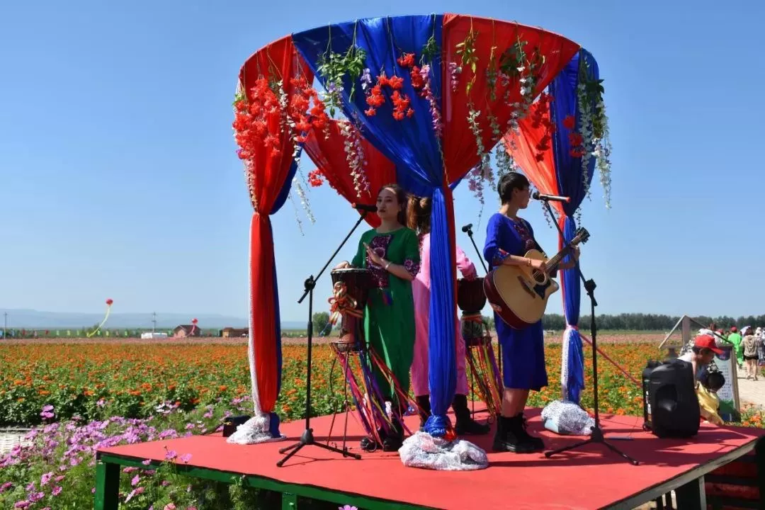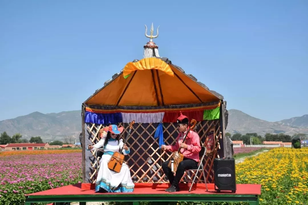 整個花田景區(qū)內(nèi)包含了木棧道圓平臺藝術表演、蒙古族歌舞文藝演出、非遺糖人制作等七個主題類互動活動。