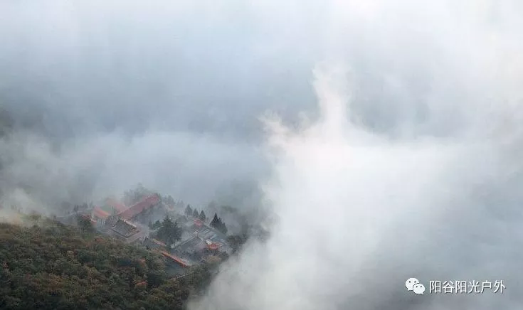站在這里,還可以看見山坳中的白巖寺,像海洋中的一艘畫舫,在波濤中前進。