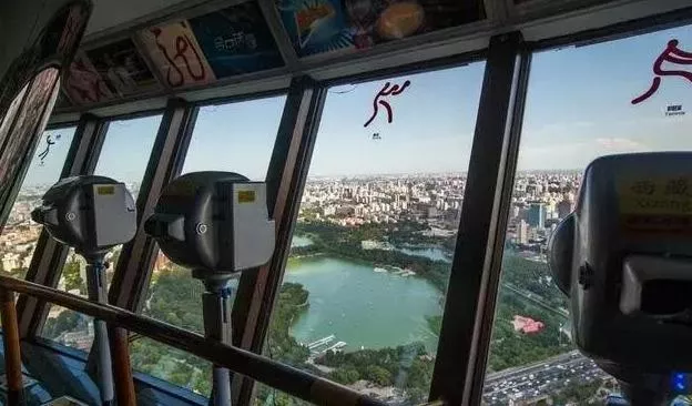 中央廣播電視塔的露天瞭望平臺是世界高塔中最大的,可以360度俯瞰北京城。并且有20倍可自動調(diào)節(jié)的望遠(yuǎn)鏡免費提供給游人觀看。緊靠平臺圍墻擺著一排白色的矮凳,這也是中央電視塔的人性化服務(wù)之一——這排矮凳是專門為孩子們設(shè)置的,可以讓他們踩在上面,俯瞰風(fēng)景。站在圍墻邊上,即使是在炎熱無風(fēng)的夏日,也會感到徐徐個清風(fēng)拂面而過。向遠(yuǎn)處望去,看到了高樓林立城區(qū),東南方向的長安街西北面的頤和園,都一目了然。
