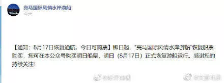 亮馬河燕莎橋至朝陽公園段8月17日恢復(fù)通航,今日可購票