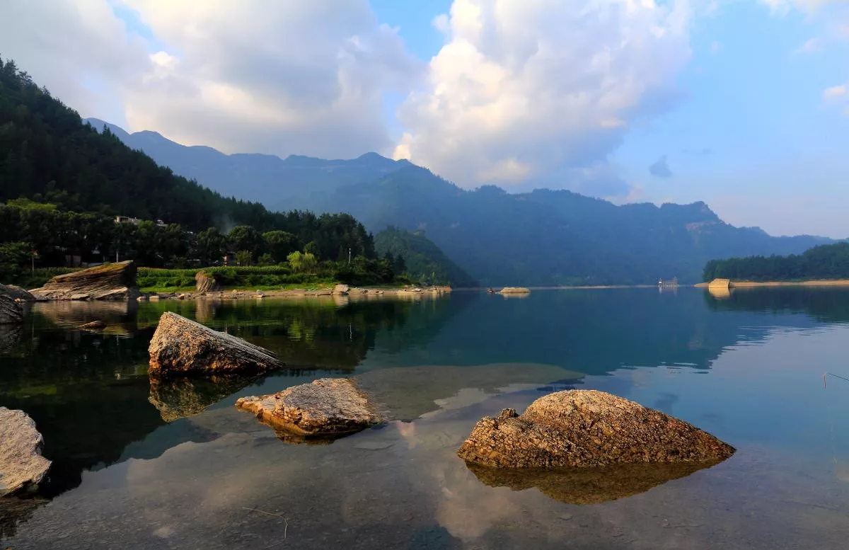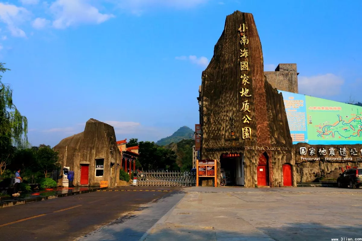 咸豐六年(1856)大地震中,谷口被湮塞而為大澤。大垮巖、小垮巖、斷碉絕壁及巖石壘成的大壩等地震遺跡,于今仍清晰可見(jiàn)。小南海四周秀峰環(huán)列,湖口奇石豎立,溪水縈回,湖內(nèi)港汊縱橫,島上茂林修竹。朝陽(yáng)寺、老鸛坪、牛背三個(gè)島嶼,古松蔽日、茶花連云、茅舍竹樓、雞鳴犬吠,一派田園風(fēng)光。