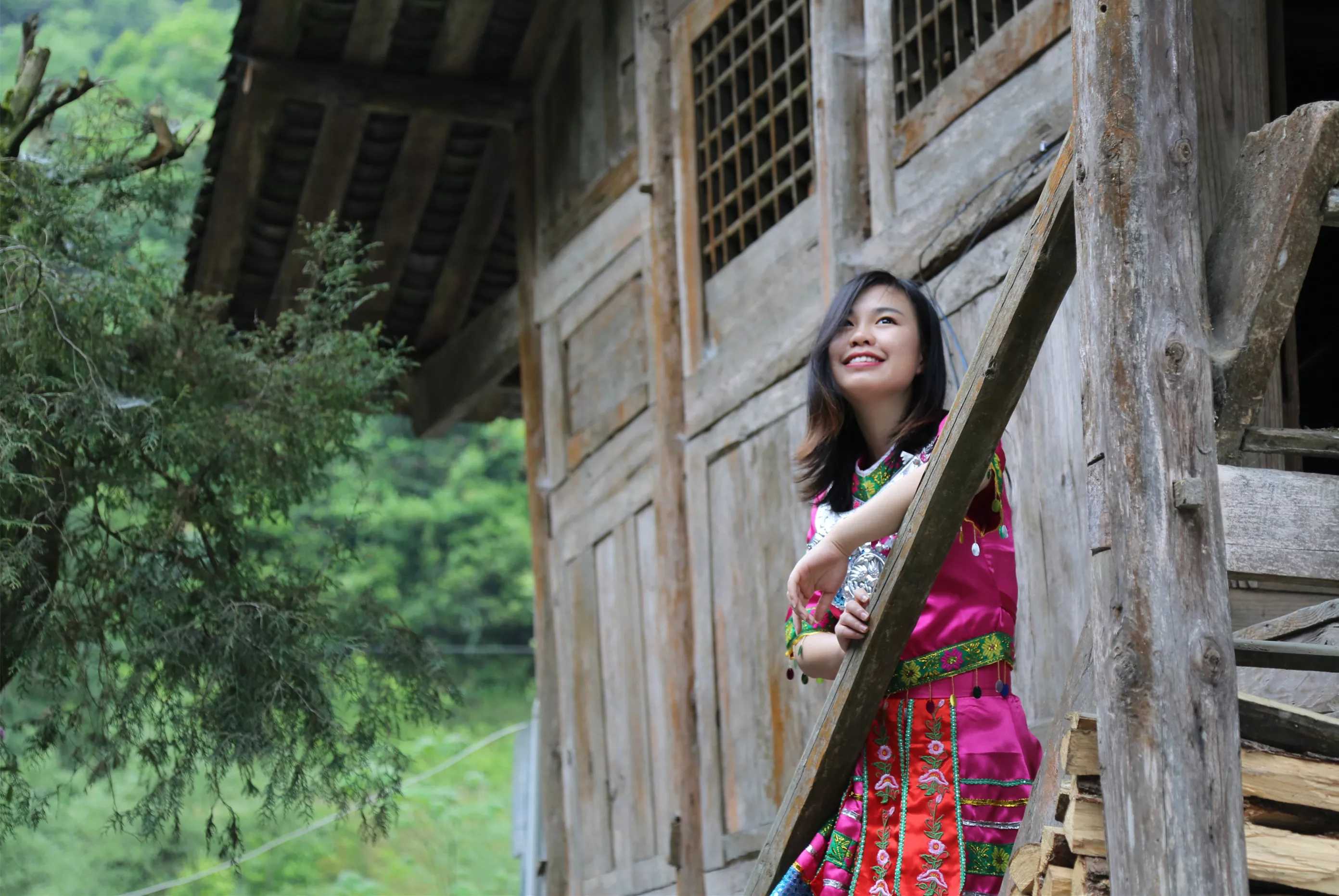 忘了說(shuō),在這里你還可以租民族服裝,更貼近這里的民風(fēng)民俗。我這套還蠻好,艷麗的色彩和這大自然清新之綠形成了較強(qiáng)烈的對(duì)比,所以拍照比較惹眼,主體很是突出,你們也可以這么玩~