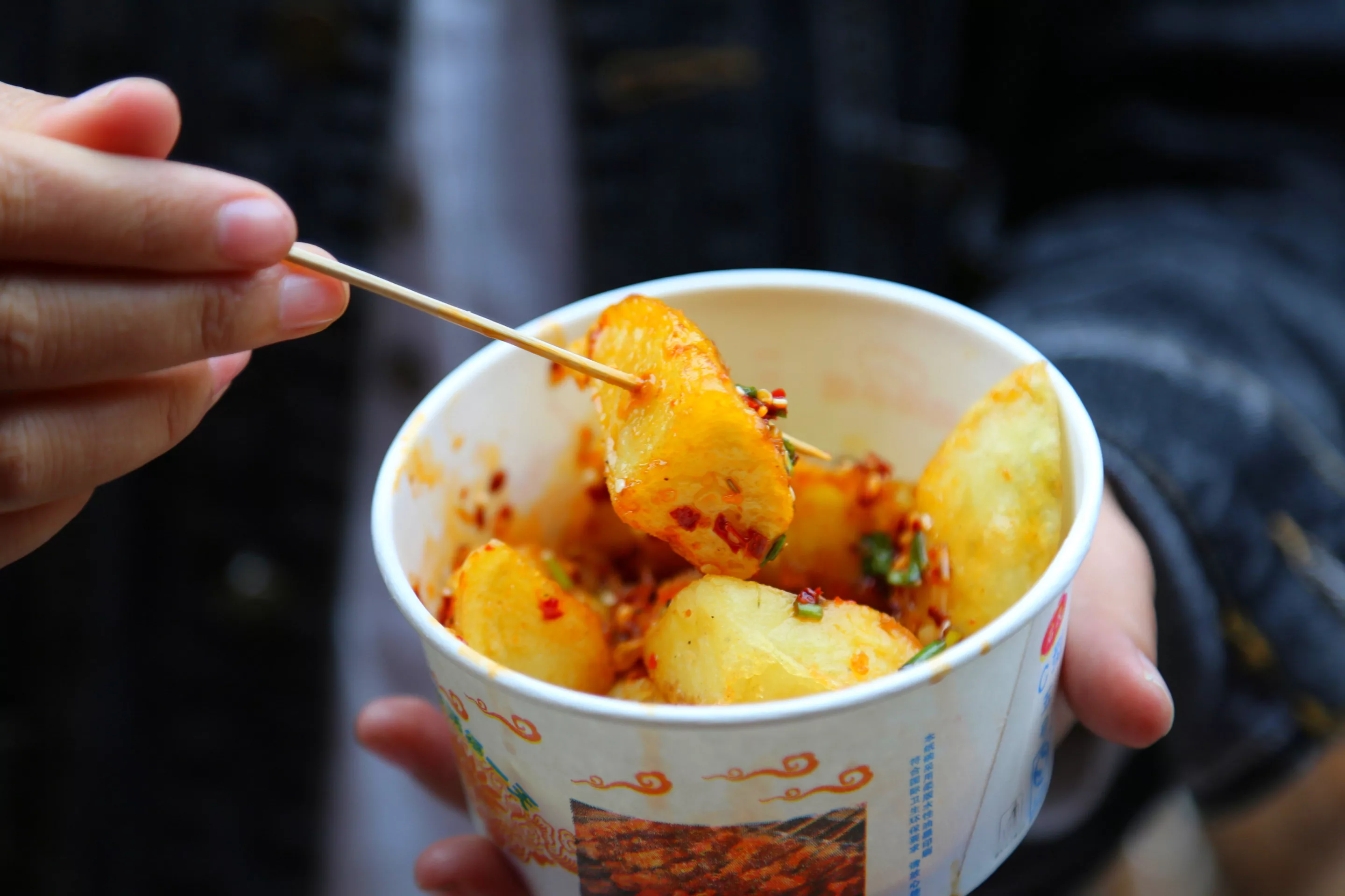 張奶奶是在這里賣(mài)零食的,油炸洋芋,我必須隆重推薦你們嘗嘗,調(diào)料做得特別好,吃起來(lái)洋芋噴噴香。