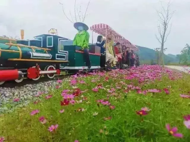 進(jìn)入景區(qū)的深處, 乘坐復(fù)古軌道小火車,置身于花的海洋,繼續(xù)欣賞竹海美麗的景色。