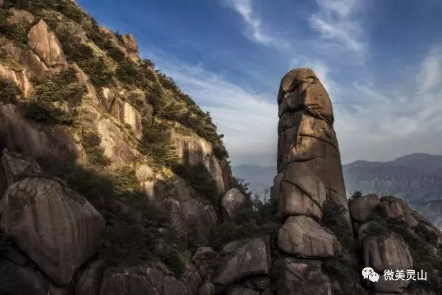 因為靈山環(huán)狀山系發(fā)育不均衡,形成了高聳突兀長達20余公里的裸露花崗巖整體構(gòu)成的超巨型“龍脊”骨架,儼如一條碩大無比的“巨龍”盤踞于靈山之巔。