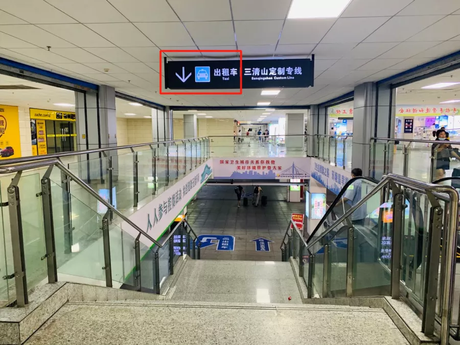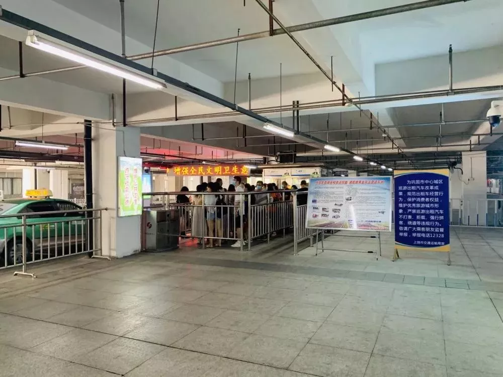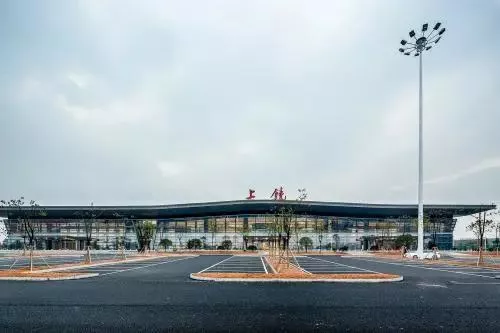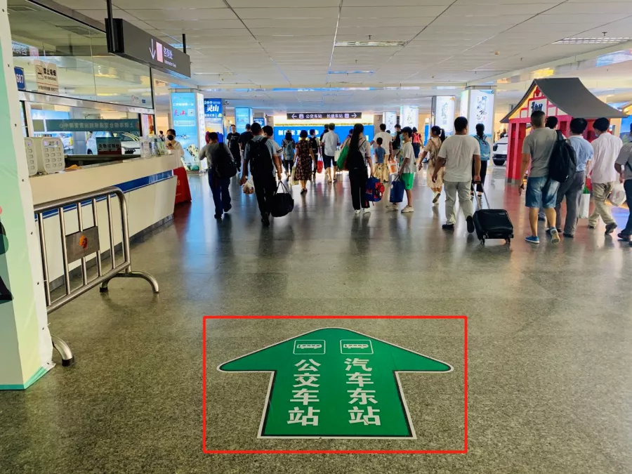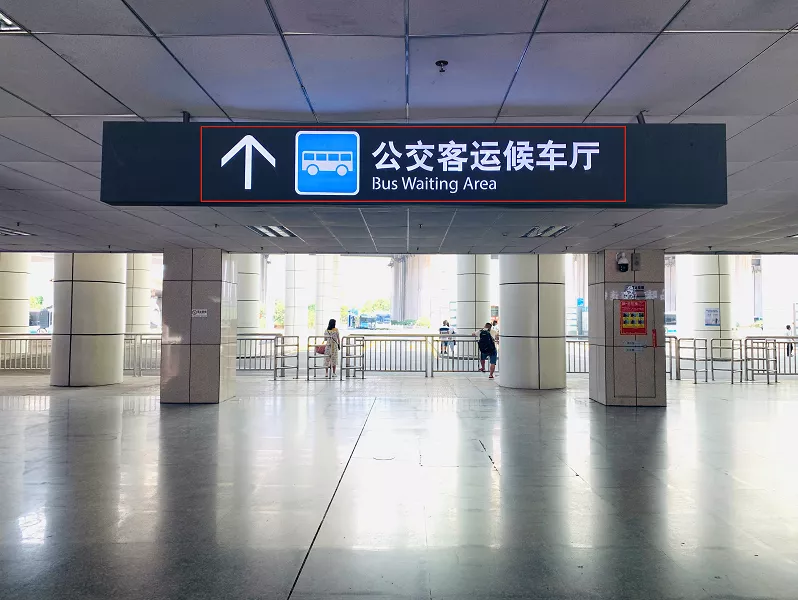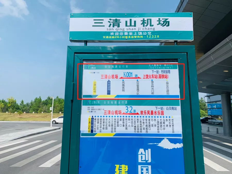 從合福線出站口和滬昆線(上饒高鐵站)出站口出來后,找到指引前往公交車站的標志,前往公交客運候車廳乘坐6路公交車。