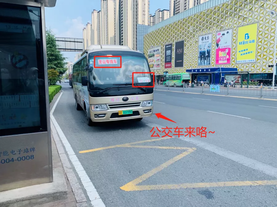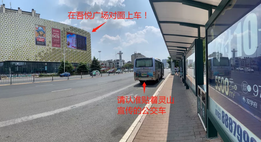 在這邊的公交站臺等待6路公交車,到吾悅廣場站換乘靈山旅游專線,即可以抵達靈山景區(qū)。