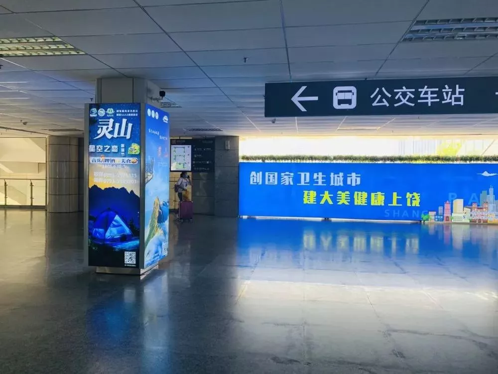 看到一排排掛滿靈山宣傳海報的那邊,左拐就能前往公交客運候車廳啦~