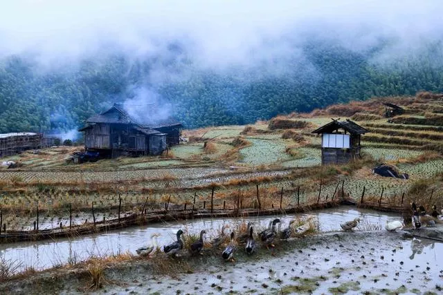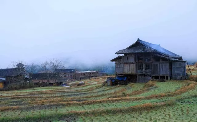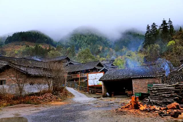 侗寨的早上煙雨朦朧,寧靜安詳,遠(yuǎn)山云霧繚繞,近處的木屋、寨塔若隱若現(xiàn),幾家房屋的大坡頂上升起裊裊炊煙,潺潺的流水、輪番的雞叫催起了不愿醒來的游客,如此良辰美景,錯(cuò)過便是遺憾。