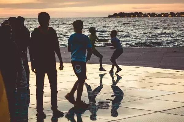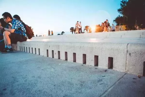 回到扎達(dá)爾,天公作美,趕上了大晴天并且時(shí)間剛剛好可以看日落。扎達(dá)爾這個(gè)城市相比克羅地亞其他沿海城市來(lái)說(shuō),現(xiàn)代化程度更高一些,尤其是海岸線被建成了一個(gè)大廣場(chǎng),廣場(chǎng)上有這里的兩個(gè)地標(biāo)——