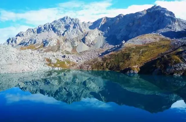 湖泊面積不足0.25平方公里,但風(fēng)景秀麗,其湖面呈卵圓形,深深嵌入山地中。湖邊山坡上百花盛開,五百繽紛。尤令人贊美的是從湖的東南側(cè)可以遙望西夏邦瑪峰,碧藍的湖水與雪山、藍天構(gòu)成一幅美不勝收的圖畫。