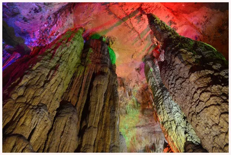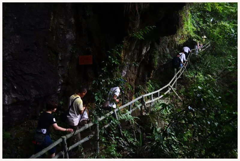 開陽猴耳天坑位于貴陽市開陽縣。天坑坑口直徑300米,坑身280米,坑底最大直徑也是280米,由于形狀像猴耳,故名為“猴耳”天坑。天坑在地理地貌上為喀斯特漏斗,是地殼運動的產(chǎn)物,再加上上千萬年的雨水溶蝕沖刷,地下水系又長時間對巖層不斷侵蝕搬運,最終形成了巨大的地下穴洞?!昂锒碧炜釉贾脖槐Wo較為完好,多處溶洞暗河穿插其間,形成尋回曲折的通道,被當?shù)厝朔Q之為“一線天”或“閃電門”的奇觀就于天坑中的大片竹林相連。這里一年四季氣候溫潤如春、山花斗艷、百鳥爭鳴,又為這片圣地平添了一種安靜、祥和、自然的神奇色彩。