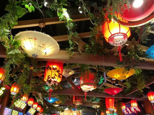 北京前門(mén)大街前門(mén)小吃城的內(nèi)部由于原本正陽(yáng)美術(shù)館的建筑比較高,因此前門(mén)小吃城頂棚的裝飾還是比較有特色。