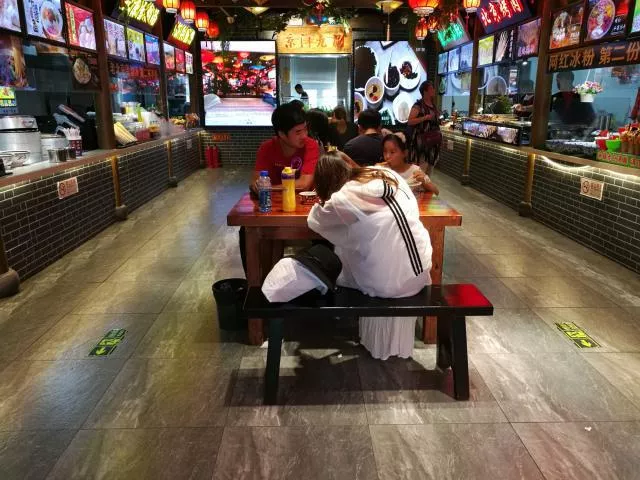 北京前門(mén)大街前門(mén)小吃城的內(nèi)部下面就是前門(mén)小吃城的大堂,從中可以看出,這也是一種“食堂”形式的經(jīng)營(yíng)模式,兩側(cè)的商業(yè)一般都是“北京傳統(tǒng)小吃”的形式。