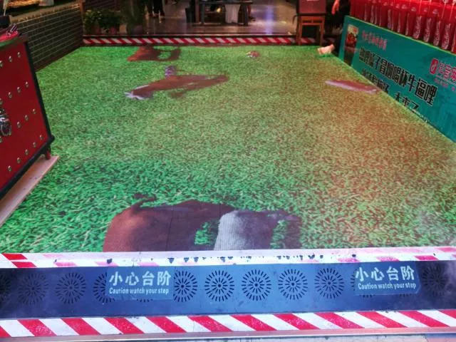 北京前門(mén)大街的前門(mén)小吃城下面是北京前門(mén)大街前門(mén)小吃城的門(mén)口,這里面獨(dú)具特色的弄出了一個(gè)視頻地板。
