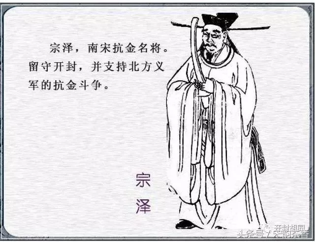 宗澤(1059年~1128年)宋婺州義烏(今浙江義烏)人,字汝霖,宋哲宗元佑六年(1091年)進士,歷任館陶尉及龍游、趙城、掖縣、登州等地地方官。他為官清正、嚴(yán)于職守、膽識過人,以“國爾忘家”著稱于世。深為皇子趙桓所賞識。宣和七年(1125年)十二月金兵南下攻汴,徽宗懼,禪位于太子趙桓,是為宋欽宗。欽宗即位后急召宗澤進京,任命他為和議使,赴金營議和。宗澤面陳宋欽宗:“和議使容易使敵人認(rèn)為我專為求和而來,請改為計議使?!睔J宗采納了他的意見,改授他為計議使。臨行前,宗澤與同僚曰:“金人氣盛,議和時一定會提出苛刻的條件,我此去寧愿一死,決不使國家蒙受損失。”后來,這些話傳入欽宗耳中,欽宗怕宗澤觸怒金人,壞了他求和的大事,臨時又撤了宗澤的計議使,改派其為河北磁州知州。