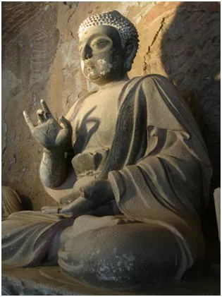 云崖寺石窟的佛像都是就地取材的石胎泥塑,不論是中間或坐或站的佛祖,還是兩側(cè)的菩薩、弟子,每一尊佛像個(gè)個(gè)眉目分明,表情豐富,形態(tài)各異。
