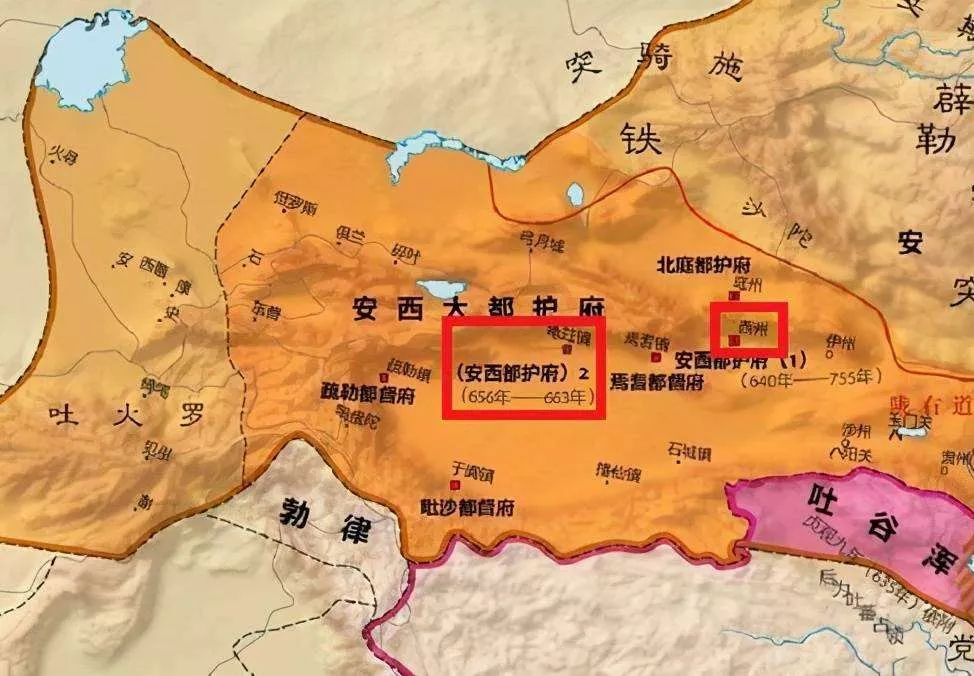 這時(shí)東突厥已滅亡,唐朝把精力集中在打擊西突厥上,西突厥不堪唐軍的暴打,于貞觀二十年請求和親,作為“天可汗”的李世民聲望如日中天,相當(dāng)霸氣地要求它割龜茲﹑于闐﹑疏勒﹑朱俱婆﹑蔥嶺五國作為聘禮。隨后在龜茲﹑焉耆(今新疆焉耆西南)﹑于闐(今新疆和田西南)﹑疏勒(今新疆喀什)四城修筑城堡,派駐軍隊(duì),史稱“安西四鎮(zhèn)”。