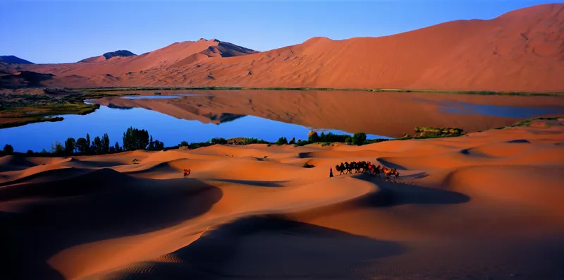 在沙漠公園,游人可以爬沙丘,涉沙海,進(jìn)行徒步探險(xiǎn);也可以借助“沙漠之舟”,一邊聽著悅耳的駝鈴,一邊飽賞大漠風(fēng)光。這里還開辟了滑沙、打靶、觀沙漠日出日落、篝火晚會等活動項(xiàng)目,令沙漠之旅豐富多彩,余味無窮。