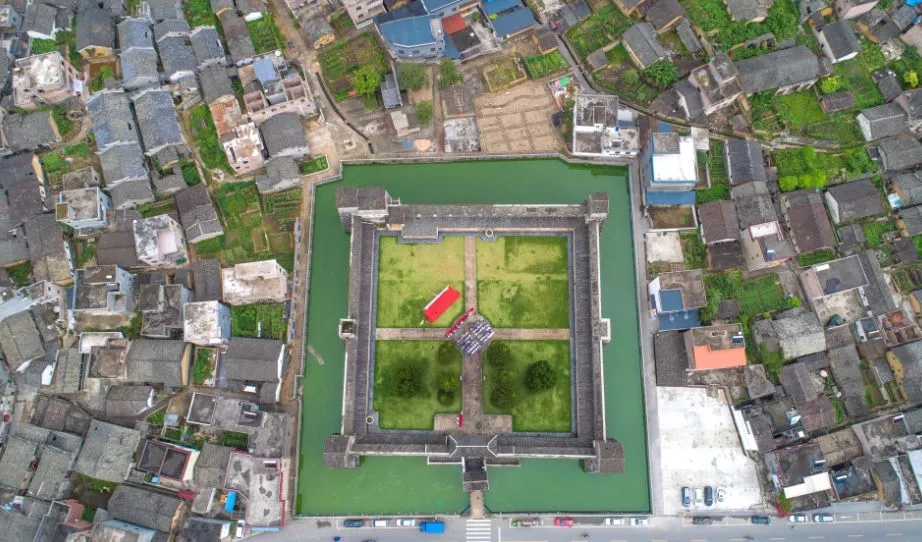 石塘古村有明清時代的古建筑133座,其設計融合了徽派建筑的高出房檐屋脊、翹角崢嶸的封火山墻,村莊與優(yōu)良的自然生態(tài)系統(tǒng)充分結合,實現了山水田園村落和諧統(tǒng)一,與雙峰寨雄偉的建筑相成映,更突顯出古村落的建筑特色。