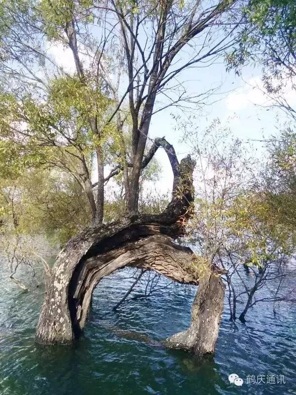 那些被水淹沒的樹,低處的枝干不見了,像一柄又一柄的扇面立在水上,像開屏的孔雀把頭深埋水里。如果光影恰好,能看到倒影的話,疏疏朗朗的枝椏形成一個(gè)又一個(gè)的半圓,水下面的半圓呼應(yīng)著水上面的半圓,背景是隱約的山,近景是平靜如鏡的水,這如何不是一幀歲月安好的最美風(fēng)景