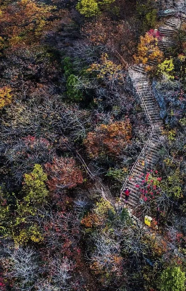 10月26日,棗莊山亭區(qū)抱犢崮國(guó)家森林公園內(nèi)層林盡染,宛如一幅色彩斑斕的美麗畫(huà)卷。