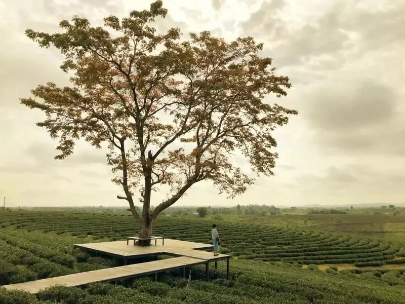 盎然綠意環(huán)繞四周,茶田如階梯般錯(cuò)落而下。坐落于茶丘制高點(diǎn)的“CHOUIFONG TEA CAFé”餐廳正是眺望茶田蒼翠美景的絕佳觀景位。餐廳建筑由泰國(guó)建筑師傾心設(shè)計(jì),曾榮獲世界級(jí)的The Architizer A+ Awards獎(jiǎng)項(xiàng)。觀景同時(shí)你能靜心品茗,并享用到各式以綠茶為原料的人氣美食