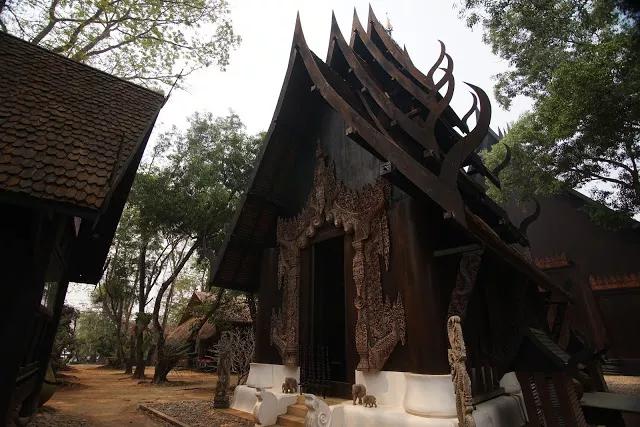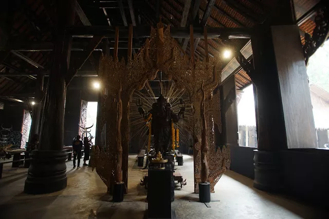 黑廟又叫黑屋 ,不是寺廟也沒(méi)有佛殿,只是應(yīng)對(duì)白廟的一種習(xí)慣稱呼。由泰國(guó)鬼才視覺(jué)藝術(shù)大師Thawan Duchanee花近40年打造的私人博物館,以地獄與死亡為主題,與白廟形成“天堂與地獄”的極大反差。