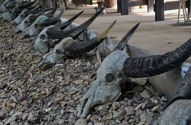 黑廟內(nèi)收藏了大量動(dòng)物骸骨、標(biāo)本皮毛等,表現(xiàn)了死亡的一面;也展出主人Thawan Duchanee的各種木雕作品,他粗獷畫風(fēng),膩予黑屋兇猛、豪邁的性格。其中有趣的是,連洗手間的標(biāo)示也是以性器來(lái)表達(dá)男女之意。