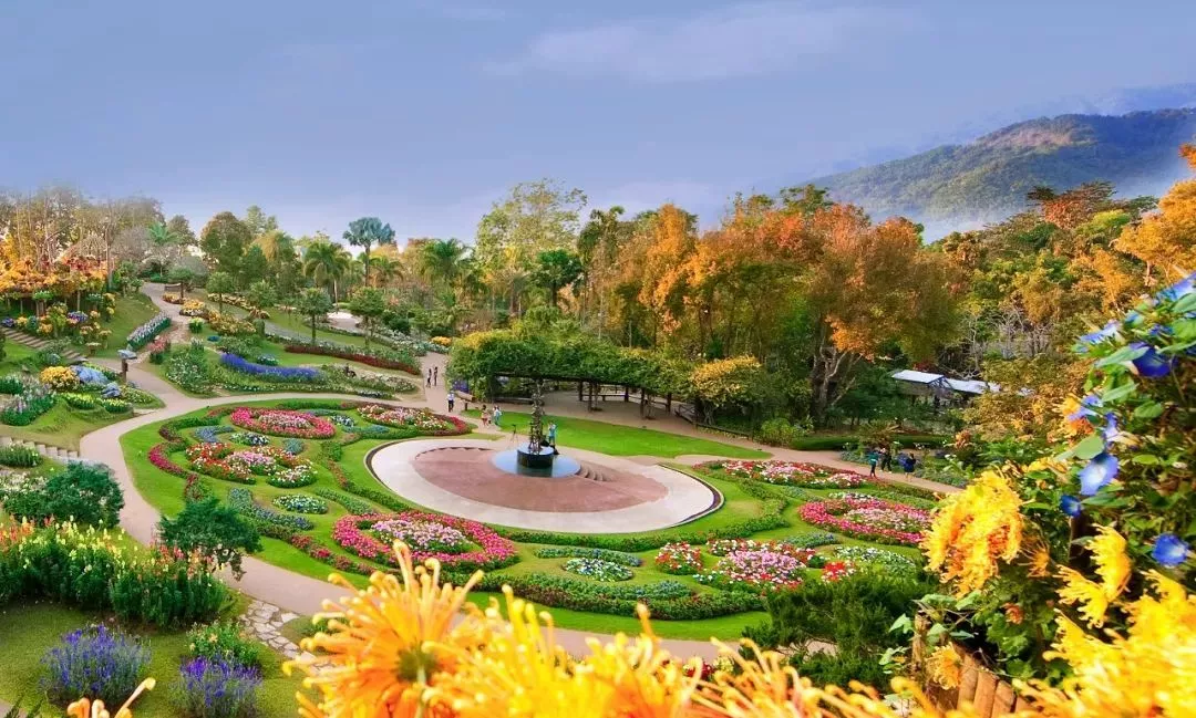 位于清萊夜莊,登上雷東的公路約22公里,是一座設(shè)在山里的培養(yǎng)植物花卉中心,在山坡上所開(kāi)辟的巨大花圃,繁殖了萬(wàn)紫千紅的花卉,這是泰國(guó)皇太后的特別栽培,教導(dǎo)當(dāng)?shù)厣絽^(qū)民眾種植花草,使一片頹廢的山野地帶,變成花團(tuán)錦簇的天地。