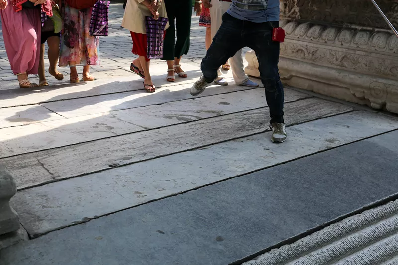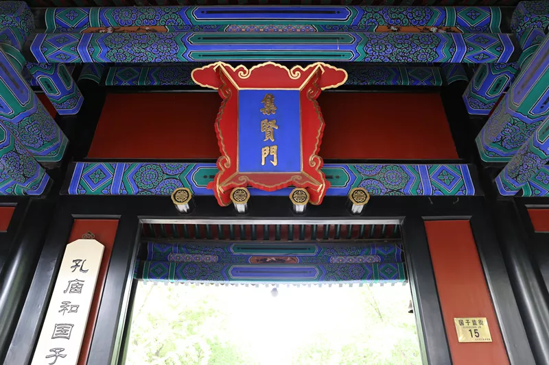 在古代學(xué)生要從兩側(cè)小門走,中間的大門只有皇上和狀元才有資格通過,稱為龍門。今天就沒那么多限制了,誰都可以從龍門過,石板中間有2塊漢白玉“龍門石”,記得要一步邁過,象征著“鯉魚跳龍門”。