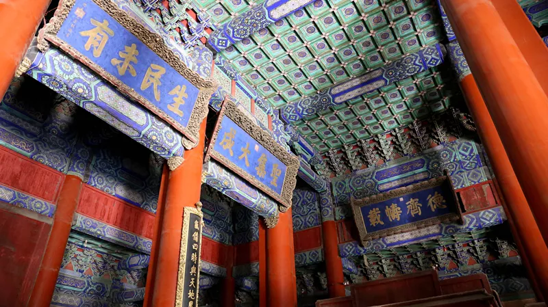 對大成殿的第一印象就是貴氣逼人,作為孔廟的主體建筑,不僅供奉著孔子神位,也是皇帝祭拜的地方,那豪華程度可想而知。