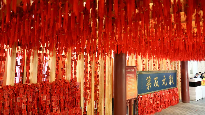 進入孔廟的先師門,首先映入眼簾的是東西兩側(cè)的198塊進士題名碑林,上面刻著元、明、清這三代5萬名高才生的姓名、次第和籍貫。