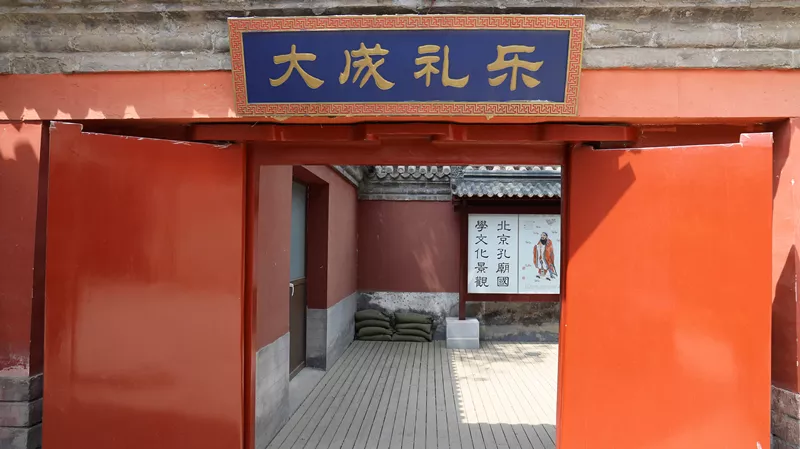 路右邊的紅墻綠瓦把街道點綴的古香古色,濃濃的京味兒又夾雜著一絲貴氣,它是最好的指示標,順著墻走就到了今天的目的地,孔廟和國子監(jiān)博物館。