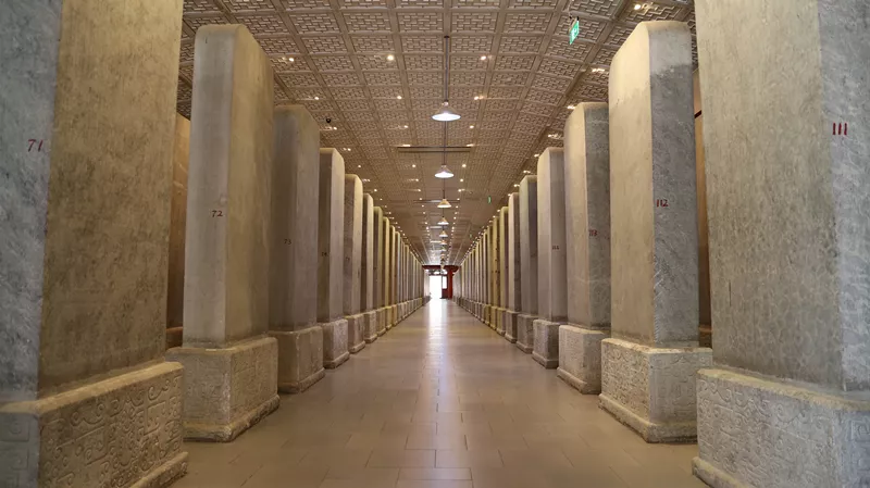據(jù)說這也是我國現(xiàn)在僅有的一部完整十三經(jīng),但讓我意外的是這么珍貴的石碑居然沒有隔離在玻璃窗和柵欄里,而是“赤裸裸”的肩并肩整齊排列著,游客可以最近距離的觀賞,看看就好千萬不要動手動腳,它需要被你文明地保護著。